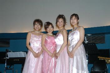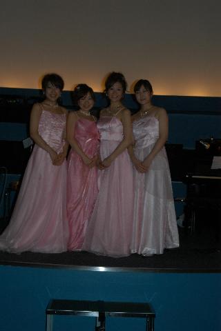 前回のクリスマスコンサートでの全員水色のドレスが好評だったので、今回も全員で合わせました