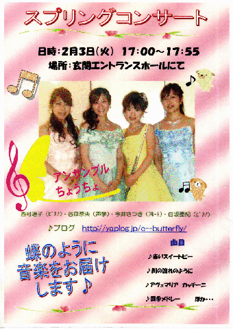 演奏依頼 - アンサンブルちょうちょ > サイトマップ > 2009.1.26. 関西労災病院 スプリングコンサート