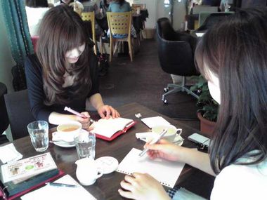 私たちの会議は、いつもこんなカンジで美味しいランチやデザートを食べたりしてお腹と心を満たしながら、名案が浮かんでくるのを待つのです